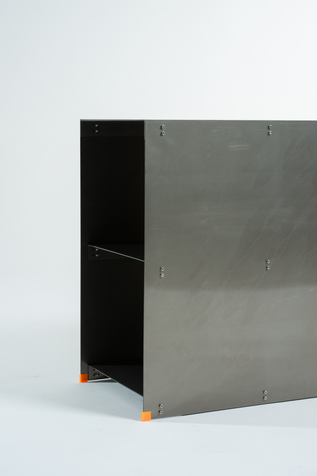La foto del catálogo tiene una terminación color Laca, y el tono de la chapa solo en estanterías es laminado en frio.